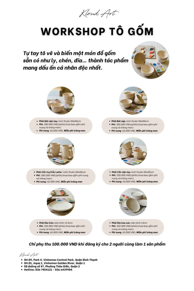 Xem thông tin workshop tô gốm Số lượng vé (từ 320.000 đ/vé)