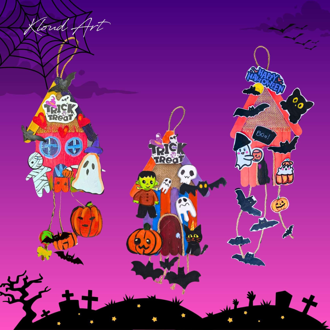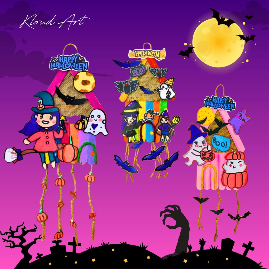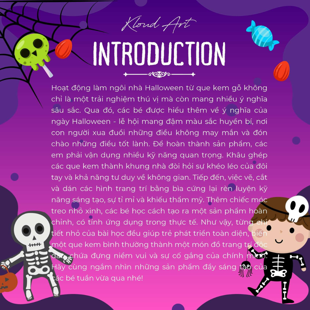 The activity of making a Halloween house out of wooden ice-cream sticks is not only a fun experience but also carries many meaningful lessons. Through this, children can learn more about the meaning of Halloween — a festival filled with mysterious colors, where people drive away bad luck and welcome good things. To complete the craft, children go through several important steps. Assembling the wooden sticks into the frame of the house requires dexterity and spatial thinking. Next, drawing and cutting decorative shapes out of paper helps them practice creativity, meticulousness, and aesthetic sense. Adding a small hanging hook teaches them how to create a complete and practical product. In this way, each small lesson helps children develop comprehensively, turning ordinary wooden sticks into a unique decoration filled with joy and their own effort. Let’s take a look at the children’s creative works from last week!